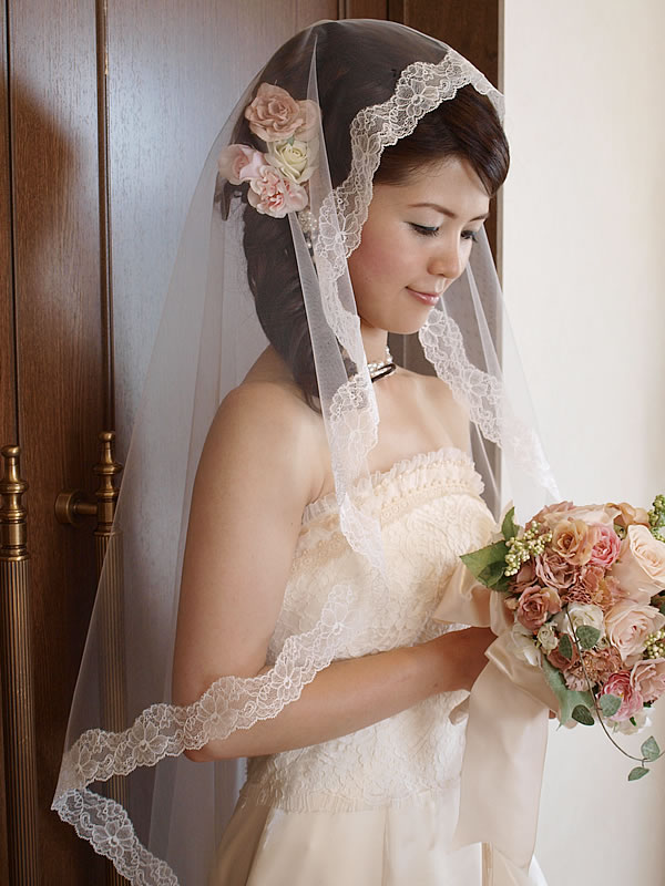 比較的細めのレースですが、波のような動きが軽やかでエアリーなイメージのマリアベールです。