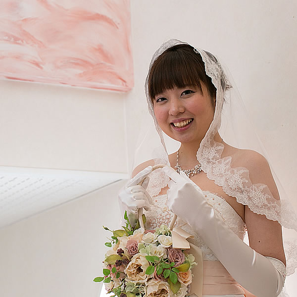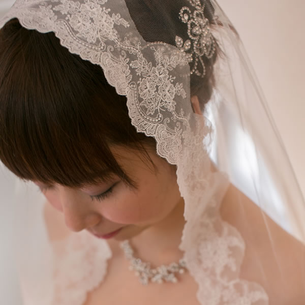 小さなお花の刺しゅうを施したレースは愛らしい花嫁さんを演出します。