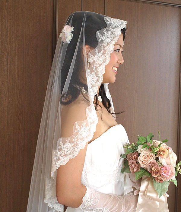 ソフトチュール(日本製の上質で柔らかな手触りです。) チュールレース(5cm~8cmの波形 チュール地に刺繍を施したレースです。) コームは付いていません。