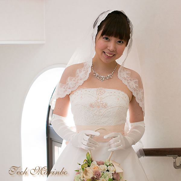 小さなお花の刺しゅうを施したレースは愛らしい花嫁さんを演出します。
