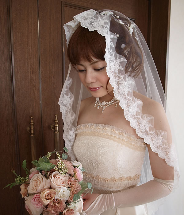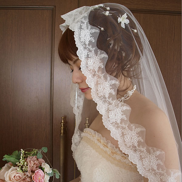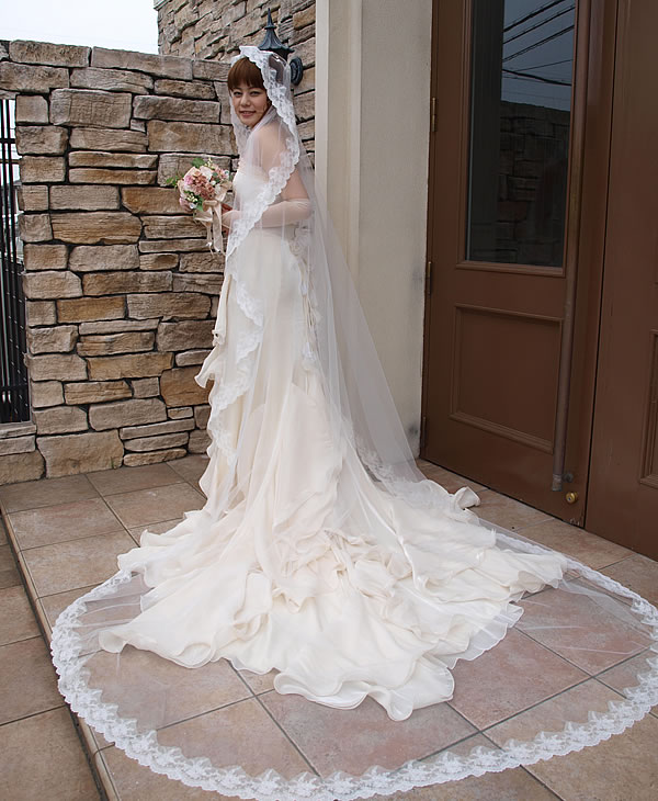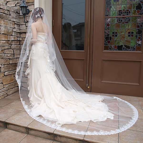 繊細なチュールレースのフェミニンなロングマリアベールです。