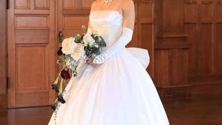 小さなお花の刺しゅうを施したレースは愛らしい花嫁さんを演出します。