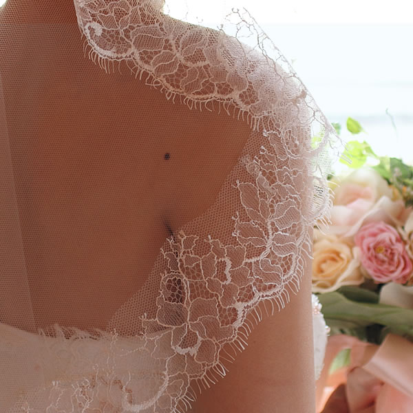 繊細で柔らかなリバーレースをほどこしたマリアベール。