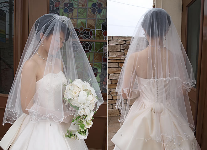優美なオーラを放つベールはドレス姿をさらに美しく引き立てます。