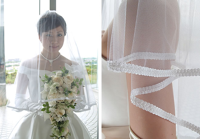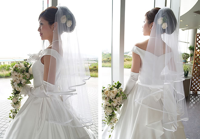 ドレスのデザインを選ばず合わせて頂きやすいミドルベールです。