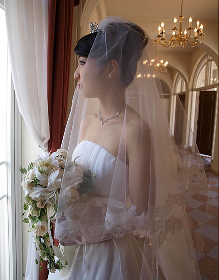 フランス製のリバーレースをほどこしたフェイスアップベール。