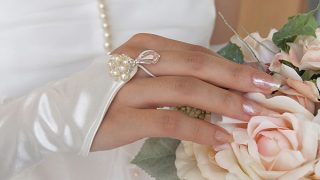 繊細で柔らかなリバーレースをほどこしたミディアムベール。