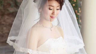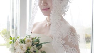 フロントにもレースをほどこし、お顔周りも気品に満ちた花嫁様に。