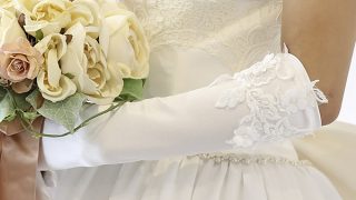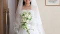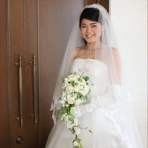 フランス製リバーレースのロング丈ベール。後トレーン部分は花柄のフェミニンなリバーレースをあしらいました。大人可愛いロングベールです。