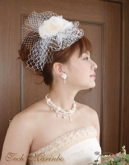 オーガンジーコサージュ ネットチュール パール他 コームが付いています。