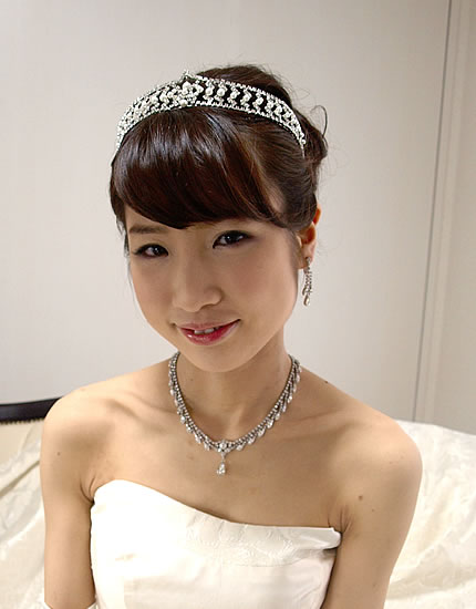 ラインストーンとパールがゴージャスにアレンジされたエレガントなティアラ。存在感ある太幅のデザインは、まさにロイヤルな花嫁を演出してくれます。