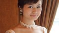 スタイリッシュなネックレスとイヤリングの組み合わせは全体の印象を引き締め、ドレス姿が際立ちます。