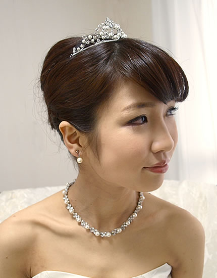 スワロフスキー社製ラインストーン パール他 【ティアラ】コーム付き【ネックレス】アジャスターなし (長さ調節不可) 【イヤリング 】玉ネジバネ式