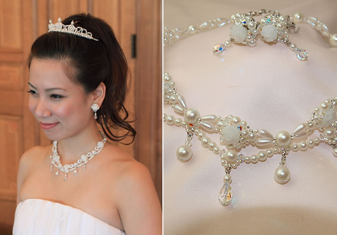 小粒のパールとビーズが上品なティアラと組み合わせたセットです。