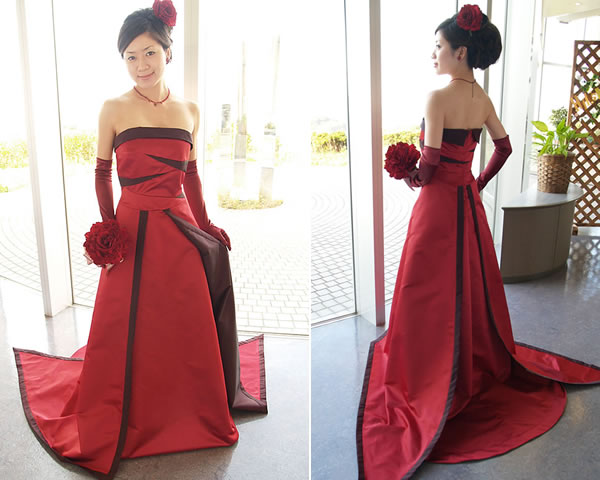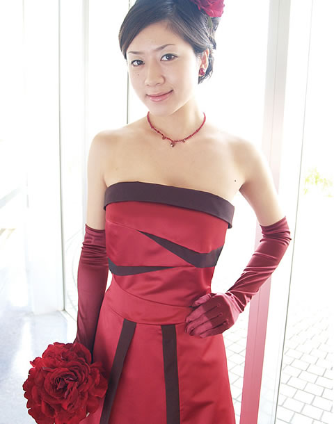 真紅のルージュのように、大人の女性の妖艶さをイメージさせるカラードレスです。